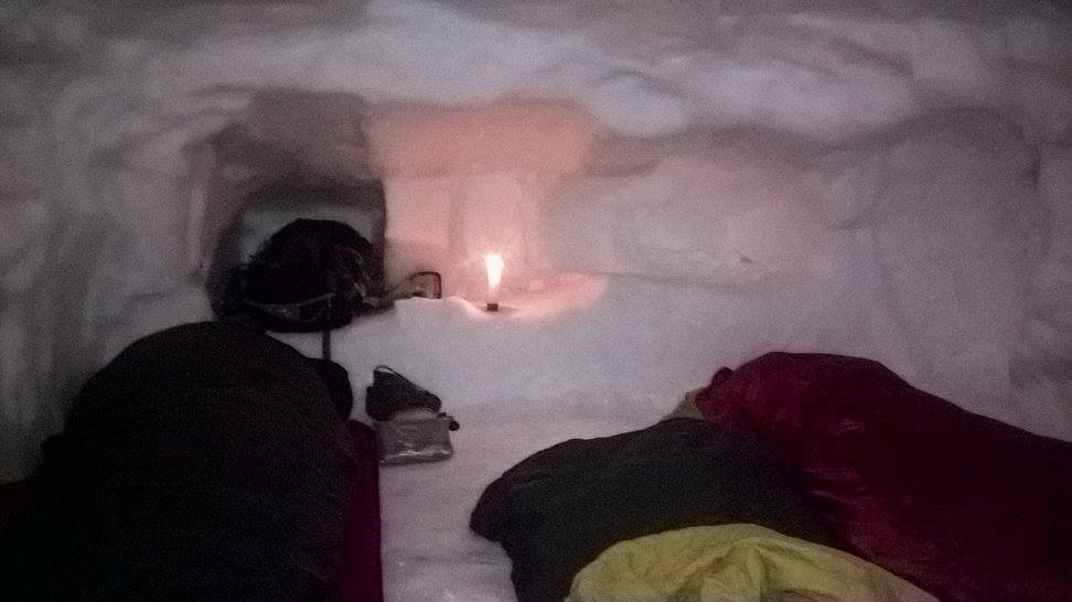 Spending the night in a snow hole in Scotland